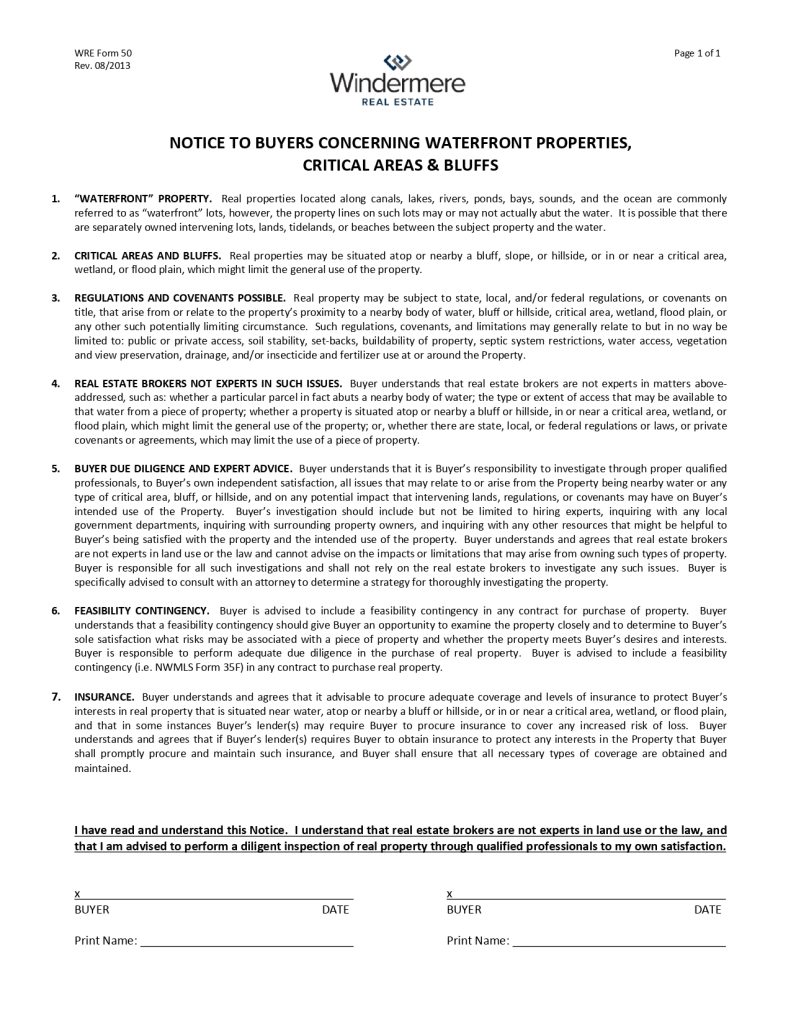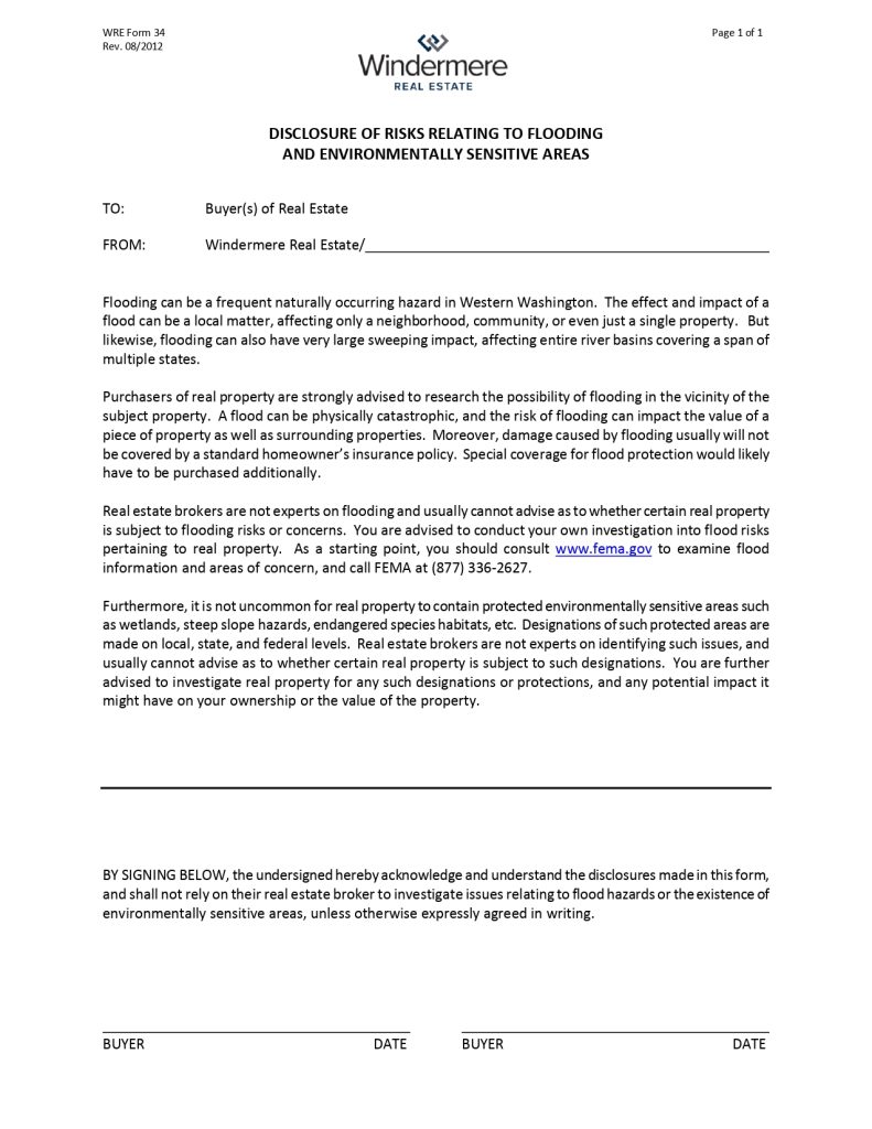 - Disclosure of Risks Relating to Flooding & Environmentally Sensitive Areas
